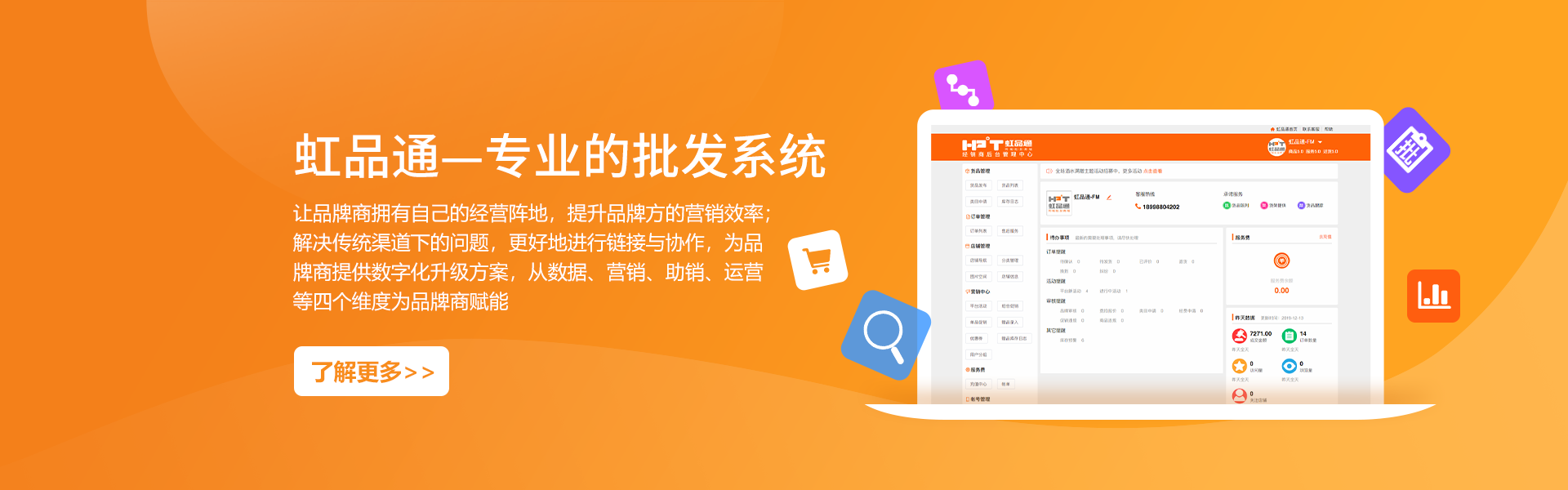 南寧虹品通軟件科技有限公司成立于2014年,是一家開發(fā)軟件技術(shù)服務(wù)公司。公司總部位于中國綠城南寧市,專注軟件行業(yè)系統(tǒng)支持和供應(yīng)鏈大數(shù)據(jù)開發(fā),并將其應(yīng)用于商業(yè)領(lǐng)域。掌握供應(yīng)鏈系統(tǒng)研發(fā)、商品流通大數(shù)據(jù)、批發(fā)零售商城等核心技術(shù),并持有多項(xiàng)技術(shù)專利和著作權(quán)。公司致力于幫助生產(chǎn)廠家、商品流通、銷售型企業(yè)向互聯(lián)網(wǎng)化轉(zhuǎn)型升級,利用互聯(lián)網(wǎng)獲取客戶、洞察市場、服務(wù)客戶
